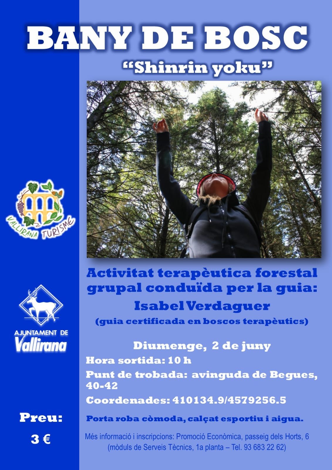 Participa del bany de bosc que l’ajuntament de Vallirana promociona al seu municipi. T’apropem a un bosc mediterrani proper a la població de Vallirana, on sentiràs com s’ha anat creant diferents lligams i relacions entre els homes i el seu entorn natural.
